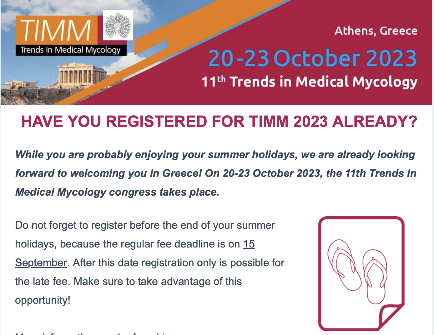 11. Trends in Medical Mycology (TIMM) 20-23 Ekim 2023 tarihlerinde Atina'da düzenlenecek.